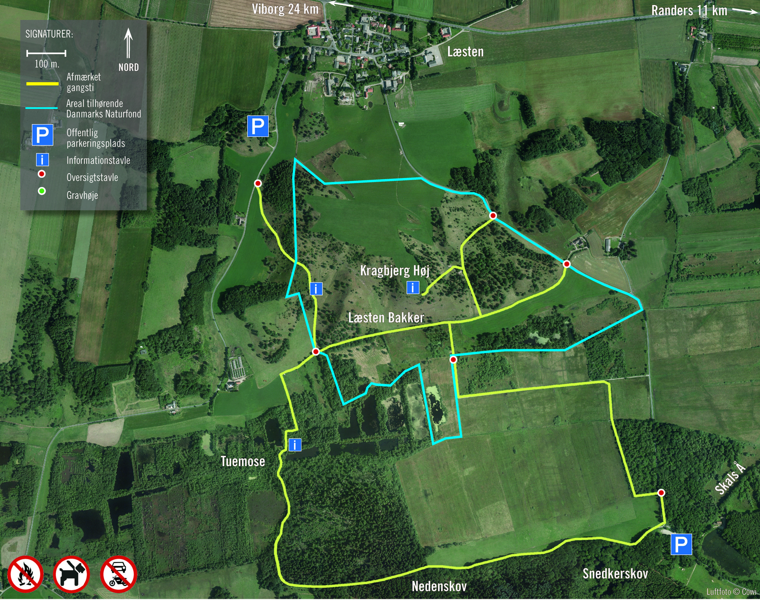 Kort med ruter og anden praktisk information