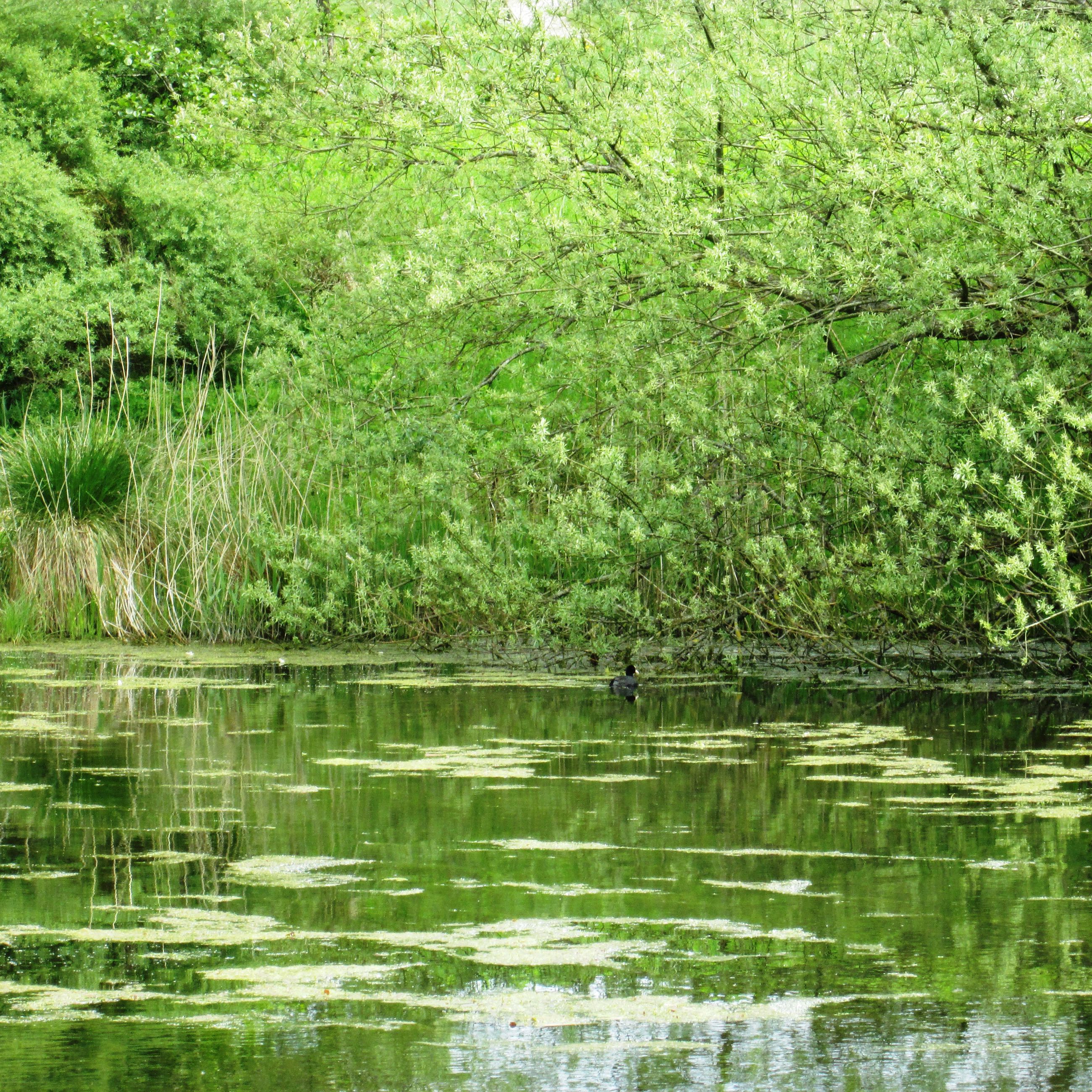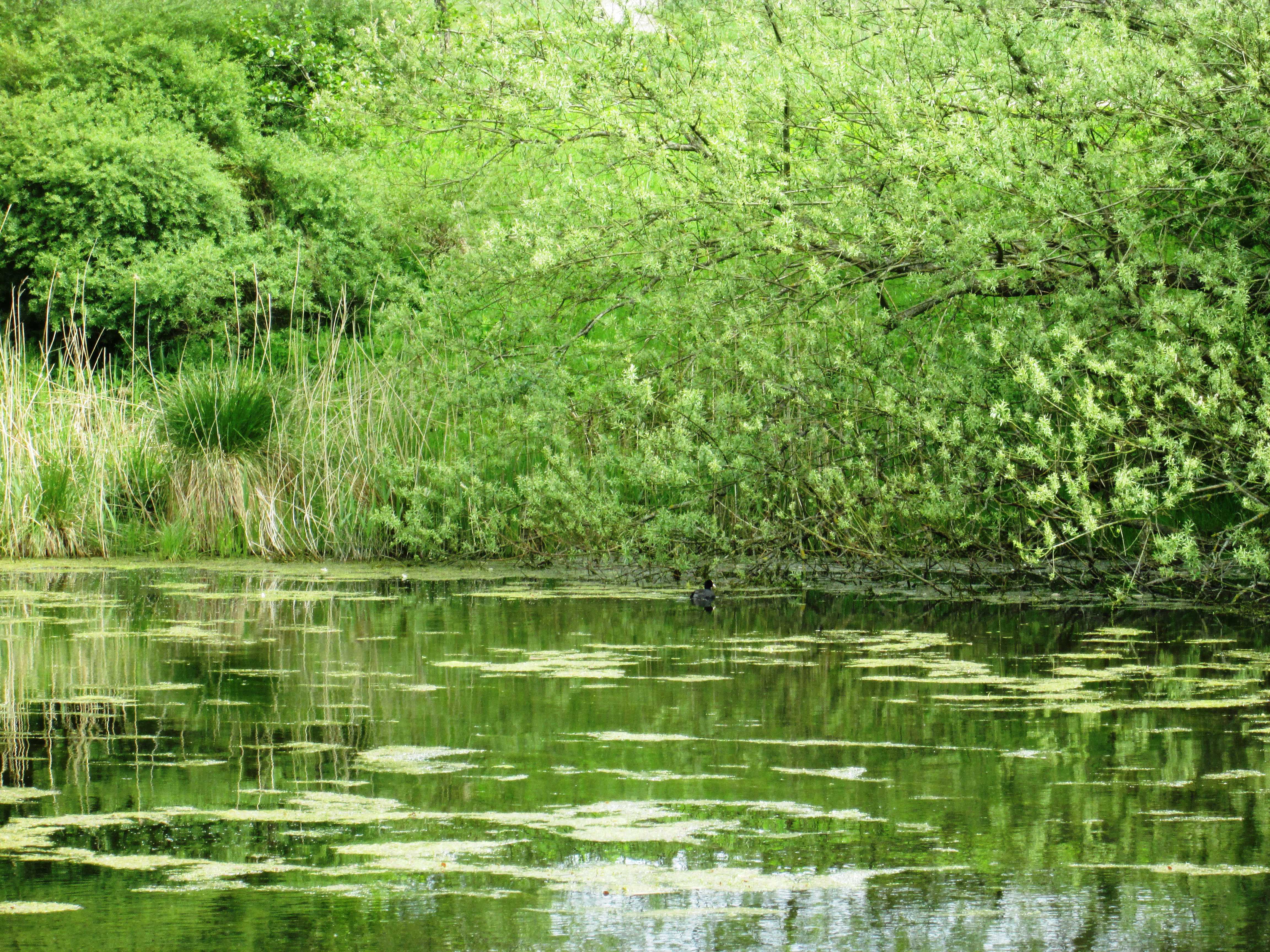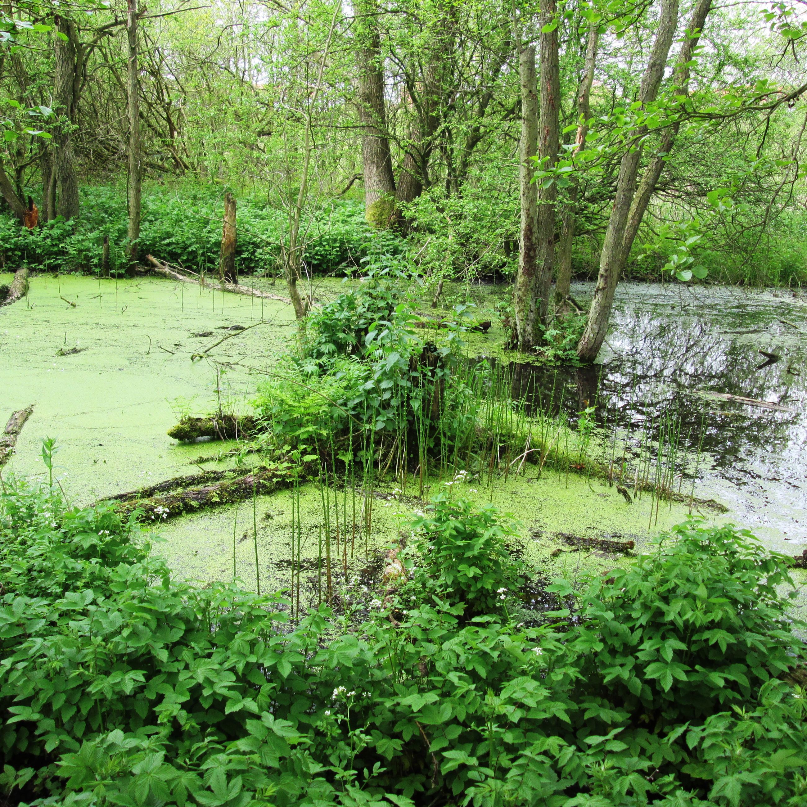 Engområderne afgræsses af kvier om sommeren. Der er flere små søer i området.