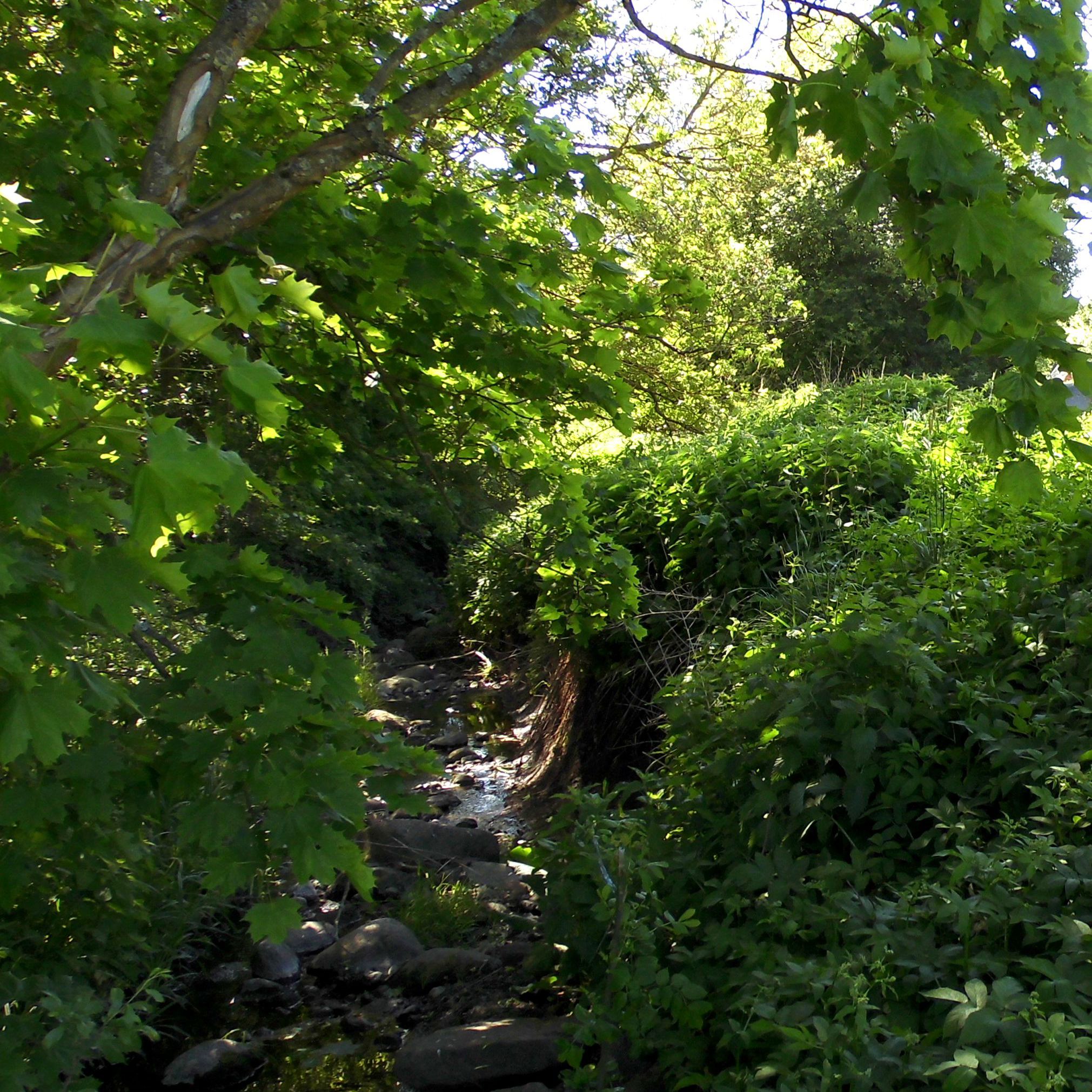 Bækkestien langs Ladegårdsbækken gennemløber et par kilometer bynær natur. En grøn kile fra Udbyhøjvej i syd til industrikvarteret på Mirabellevej i nord. Mellem Udbyhøjvej og Dronningborg Boulevard et blot 50-100 meter bredt anlæg mellem villakvarterer og beboelsesejendomme, men mod nord et op til 300 meter bredt naturområde, der afsluttes af en ung, åben egeskov.