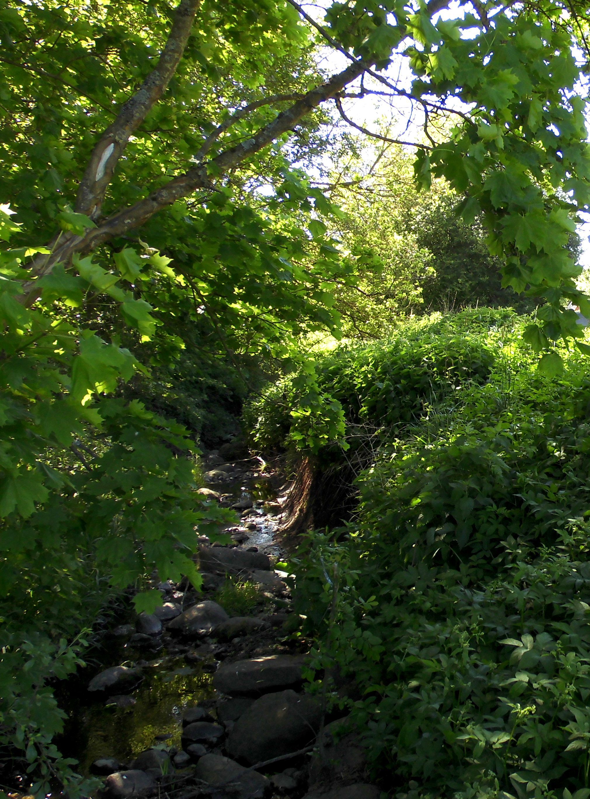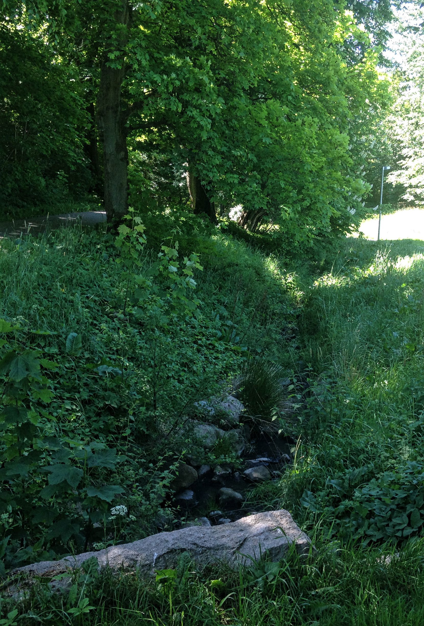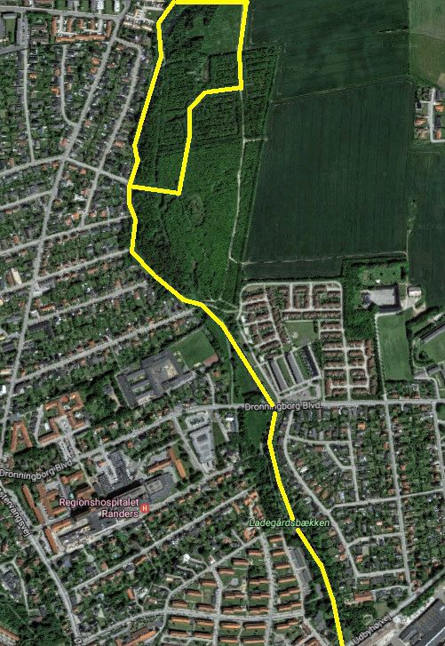 Ladegårdsbækken er sognegrænse til Dronningborg og også gammel kommunegrænse mellem Randers og Dronningborg.