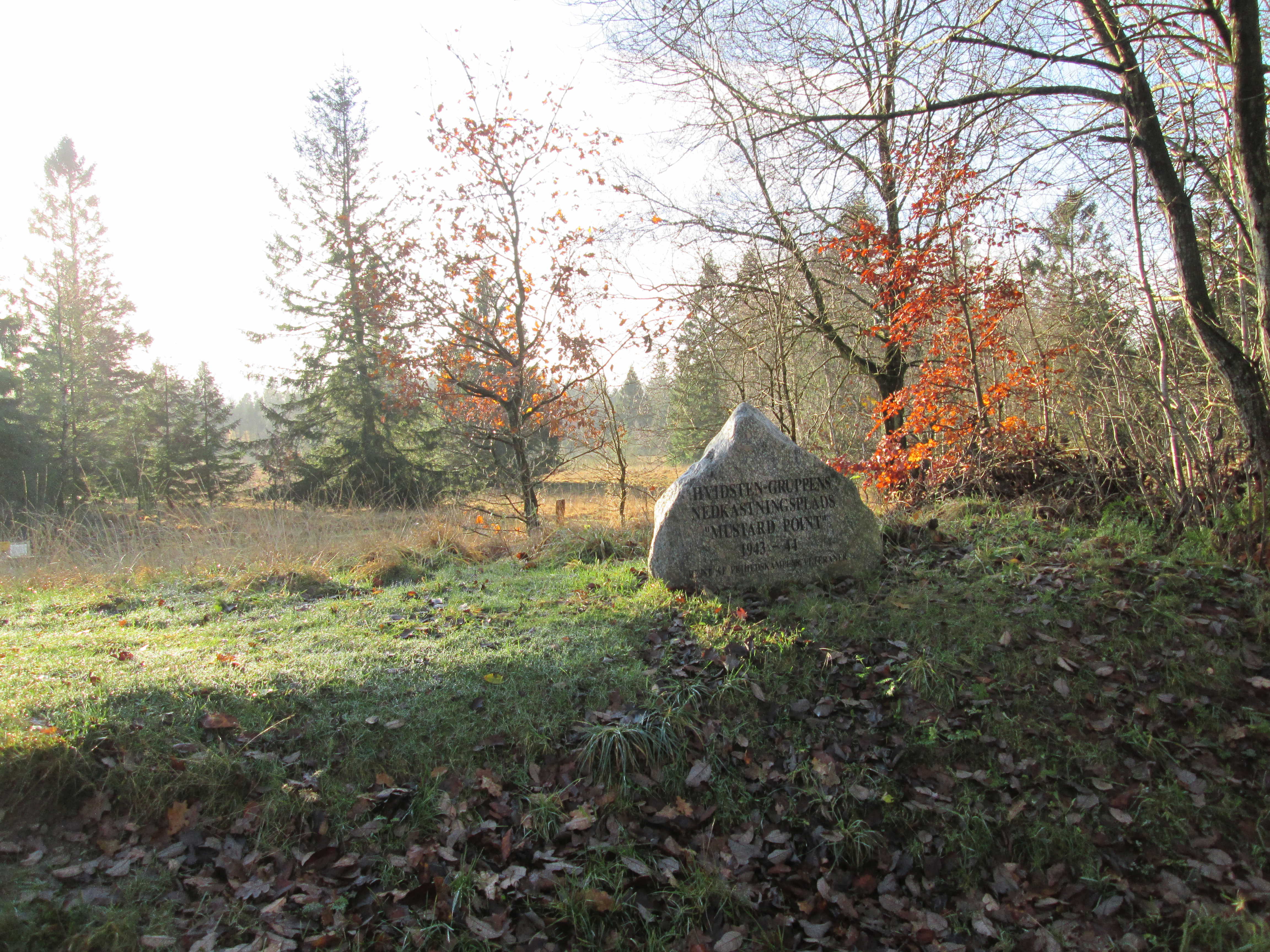 På den tidligere hede syd for Gassum-Hald-vejen gennem Allestrupgård Plantage havde modstandsfolkene fra Hvidstengruppens modtageplads for våben og sprængstoffer.