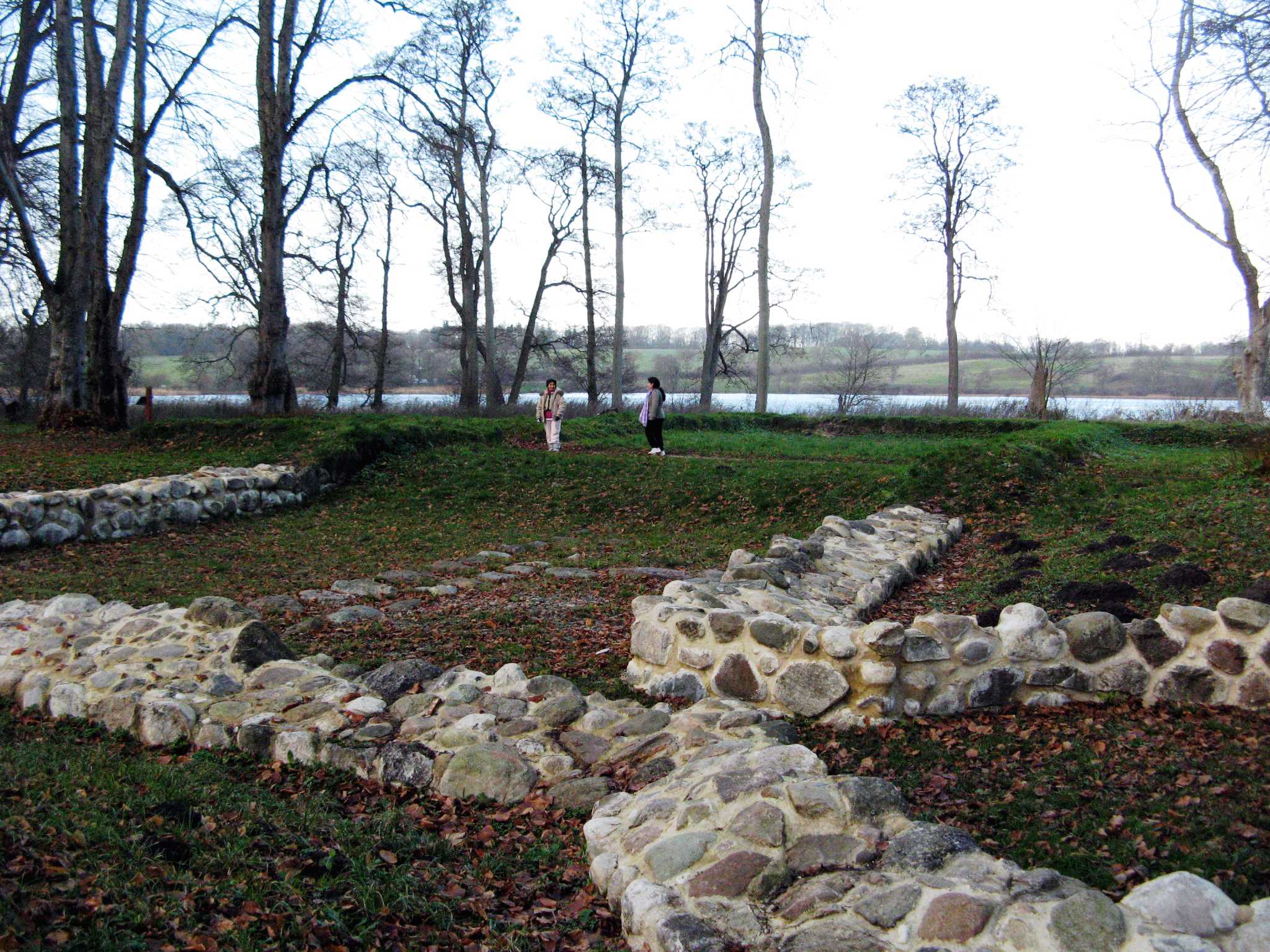 Det første Fussingø kan man danne sig et billede af på halvøen Gammelhave i Fussing Sø. Her ses et grundrids af borgen som et fundament til en bygning med fire tårne. Parken er anlagt med tre parallelle lindealleer og længst mod øst en spejldam.