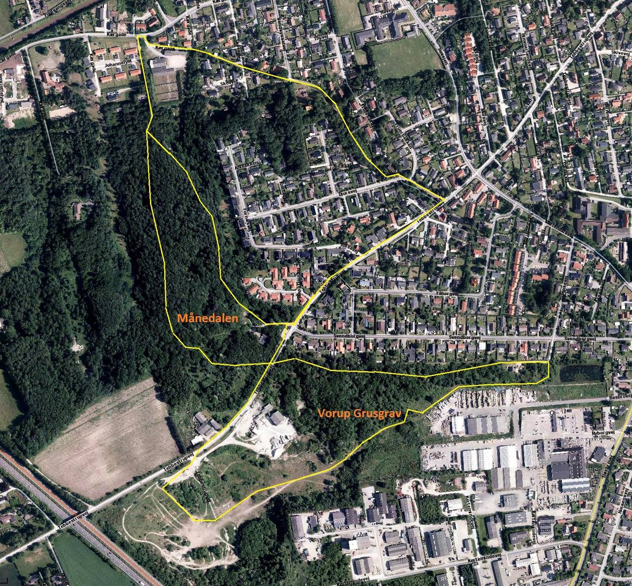 Partnerskabsaftalen omfatter hele den grønne kile, der adskiller beboelse og industri syd for Svendborgvej i Vorup. Området strækker sig fra Tebbestrupvej i vest til Bøsbrovej i øst. Den vestligste adgang til naturområdet findes pt. på Svendborgvej ved enden af Odensevej. Så bydelen har nu et sammenhængende grønt område, der strækker sig fra engene syd for Gudenå via skovområdet Månedalen og Vorup Grusgrav til Bøsbrovej.