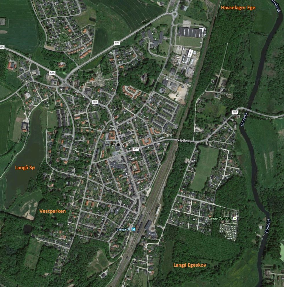 Langå ligger lunt og godt i Gudenådalen omgivet af skøn natur. Omegnen er præget af småskovene og de bløde bakker, hvor man fra flere udsigtspunkter kan se ud over det storslåede landskab. Og så byder Langå på to af kommunens ældste skove: Hasselagers Ege og Langå Egeskov.