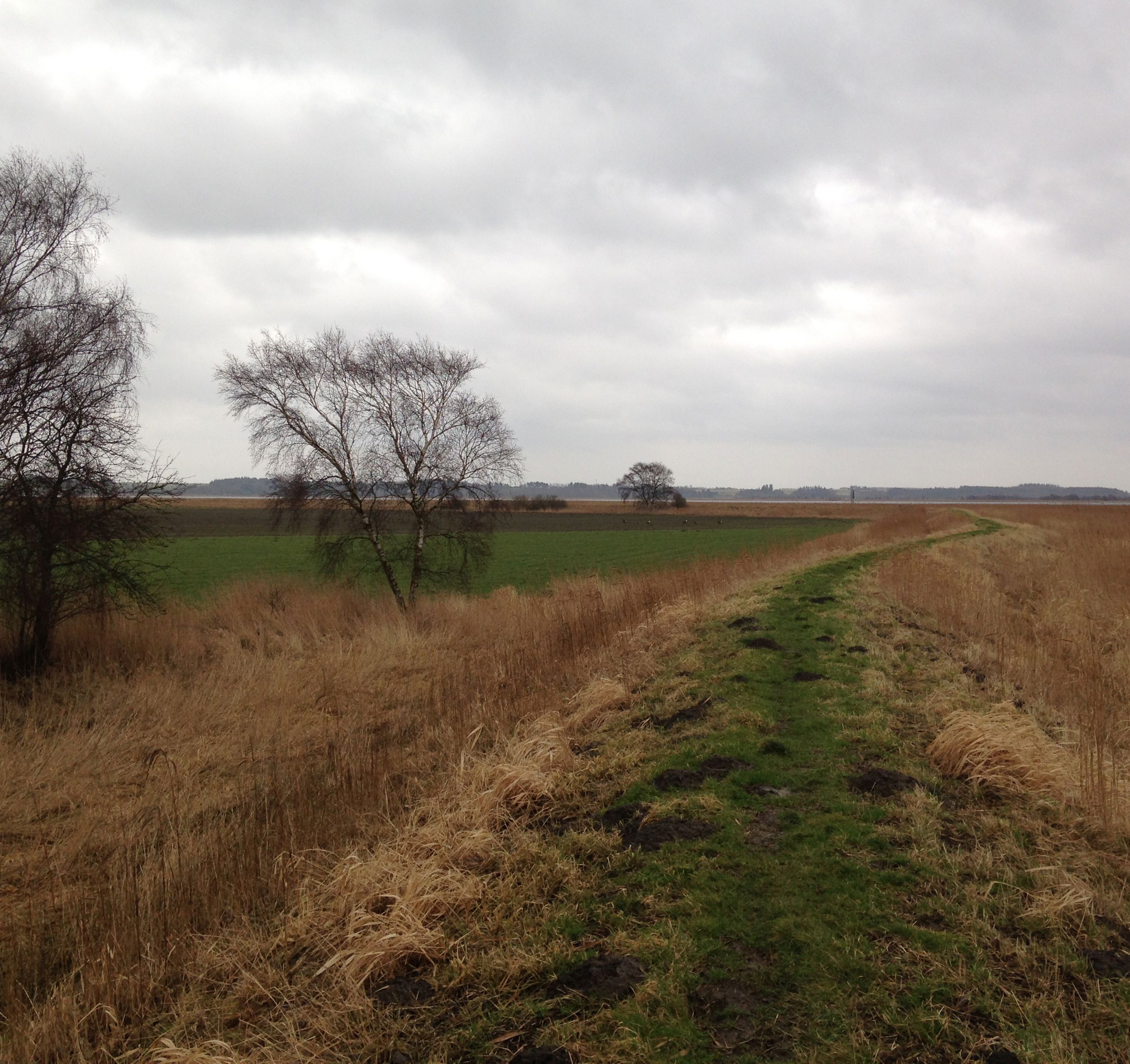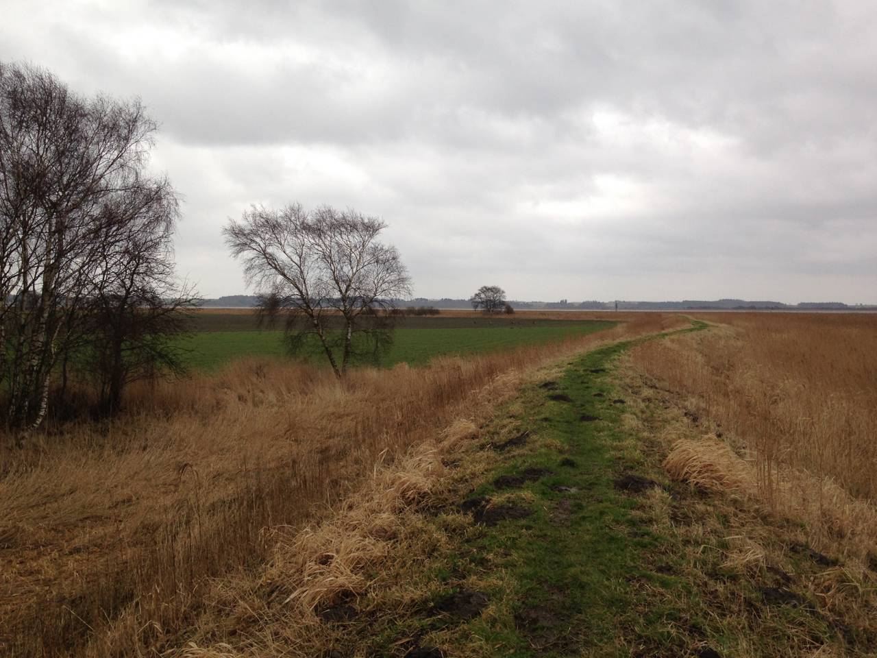 Kig ud en tidlig morgen, hvor tågen hænger over de lave enge. Måske et fragtskib sejler ud fra Randers i det første morgenlys. Sporet rundt om Øster Tørslev Kær er ca. 4 kilometer langt. God tur!
