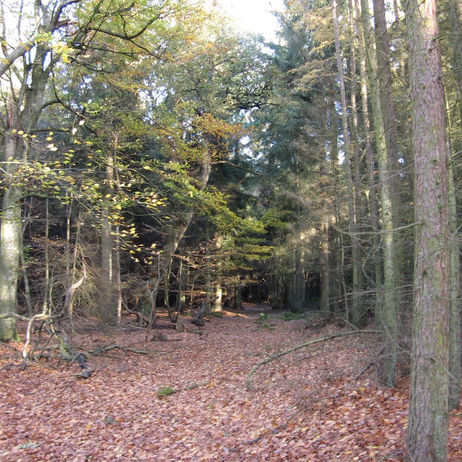 Inde i skoven tager de høje og slanke eg, bøg og ask imod. Den friske sydøstenvind har ikke længere magt. Suser det i trætoppene, eller er det bølgernes fjerne brus et par kilometer mod øst? Her hersker skovens dybe stille ro.