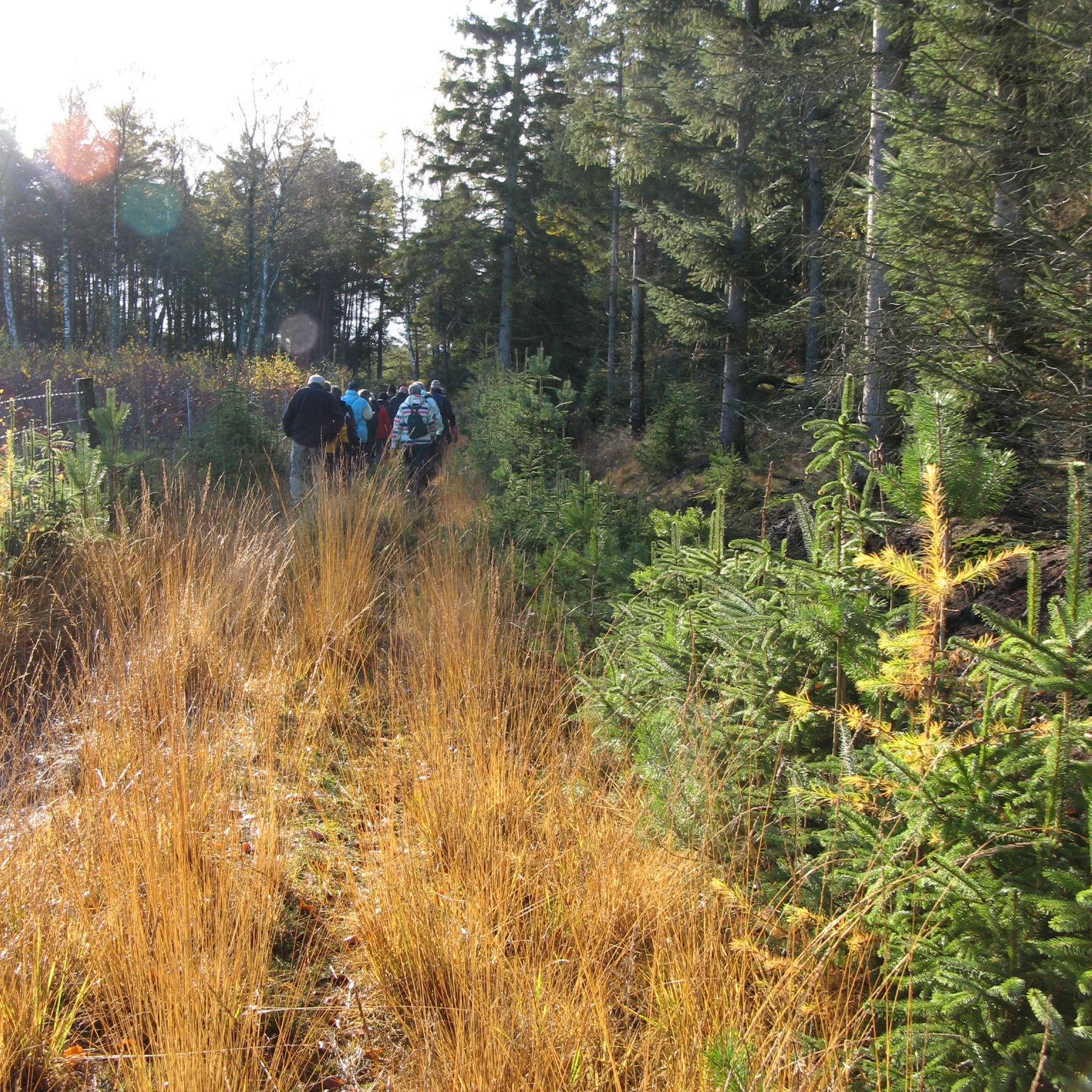 Landet hæver sig fortsat, mens vi går med raske skridt mod skoven. Herude er der både rådyr og dådyr. Dådyrene er for mange år siden udsat, men er i dag en vildtlevende stamme.