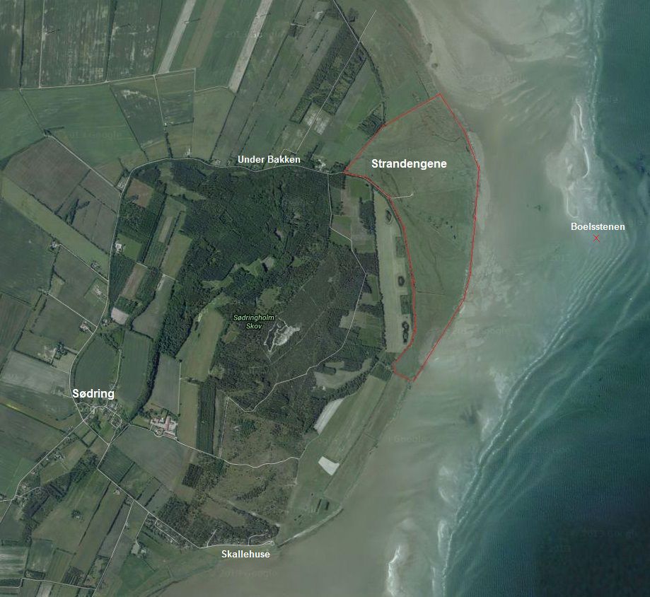 Kystlandet syd for Mariager Fjord er præget af betydelige landindvindinger med tilhørende diger, afvandingskanaler og pumpestationer. Undtagelsen er strandengene ud for Sødringholm Skov. Her er bevaret en rest af de udstrakte strandenge, som tidligere lå langs hele kysten mellem Randers og Mariager Fjorde.