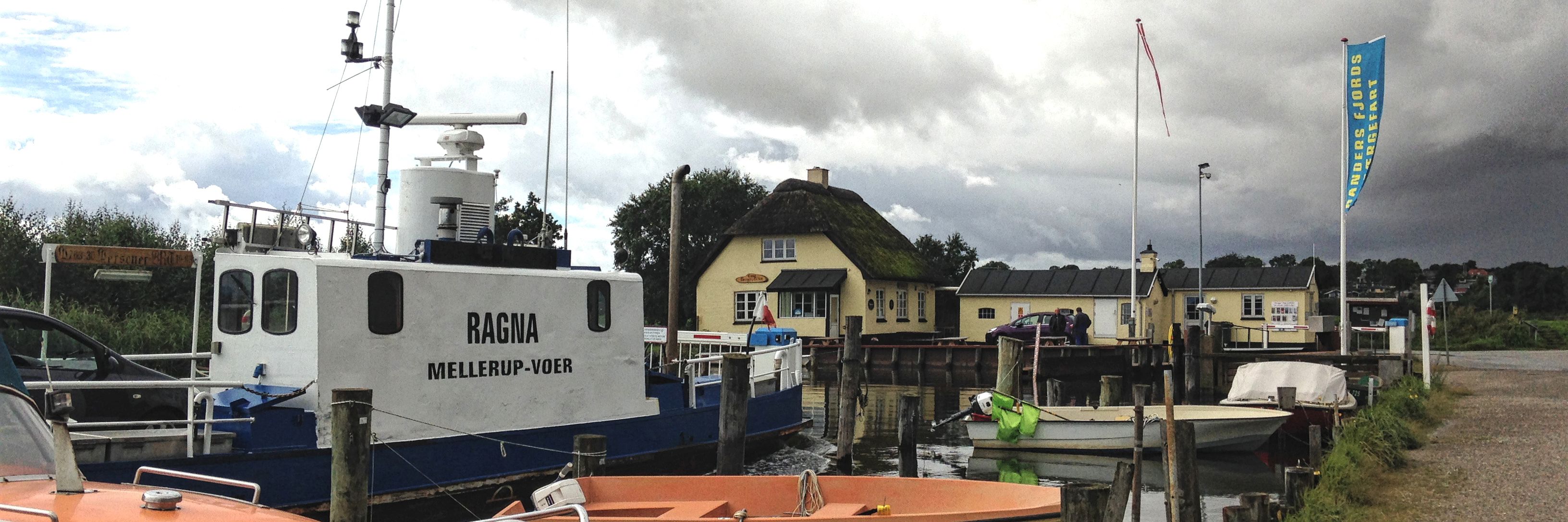 Har du har god tid, så gå en tur oven om bakken og kig på de mange spændende steder og huse. Ellers drej til højre gennem den nedre del af Mellerup, forbi Lodsgaarden og frem til Amtsvejen. Gå til højre igen, og fortsæt ad Amtsvejen tilbage til startstedet ved Mellerup Færgehus.