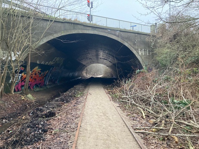 Glæd dig til at opleve den gamle jernbanestrækning, der er blevet fritlagt og istandsat til gangsti. Du passerer den smukke Strømmen Station, hvor der i dag er galleri. Strømmen Station betjente i sin tid havnen og de virksomheder, der voksede frem langs kajerne. Herfra blev varer og materialer transporteret mellem havnen, byen, det øvrige Østjylland og resten af Danmark. På banelegemet kommer du under togtunellen ved Grenåvej. Tæt ved tunellen, når du har passeret den lille træbro, kan du se mindesmærket for Carlo Randrup Thomsen, en lokalt helt, som på tragisk vis blev skudt der af Gestapo i 1945. På stedet er der opsat en infotavle og et kors.