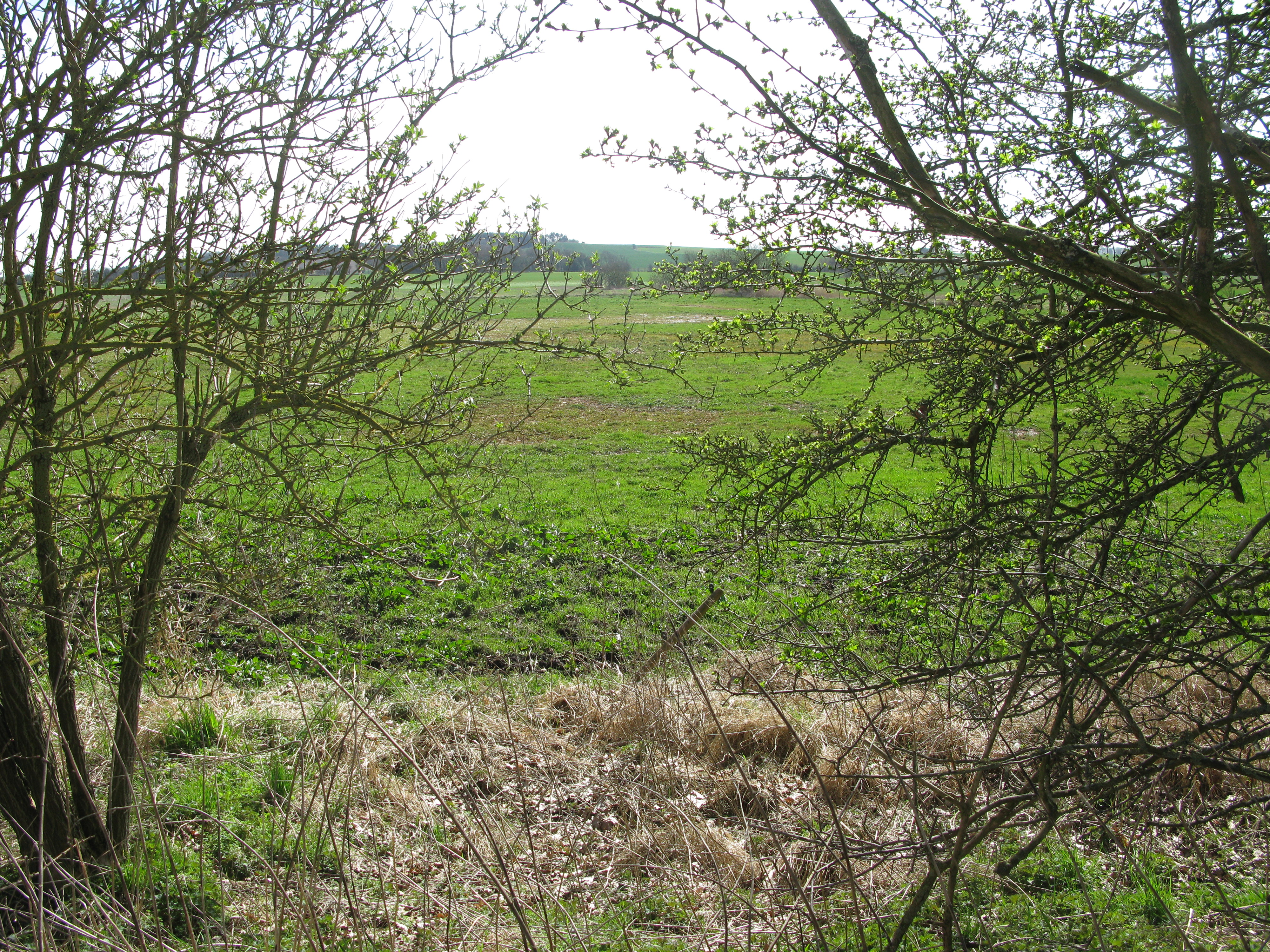 Når bebyggelsen på venstre hånd er passeret, drejes ad markvejen til højre. Denne markvej har karakter af hulvej, der snor sig ned mod engene. På begge sider er der nogle meget fine overdrev, som er ved at være en sjældenhed i Danmark.