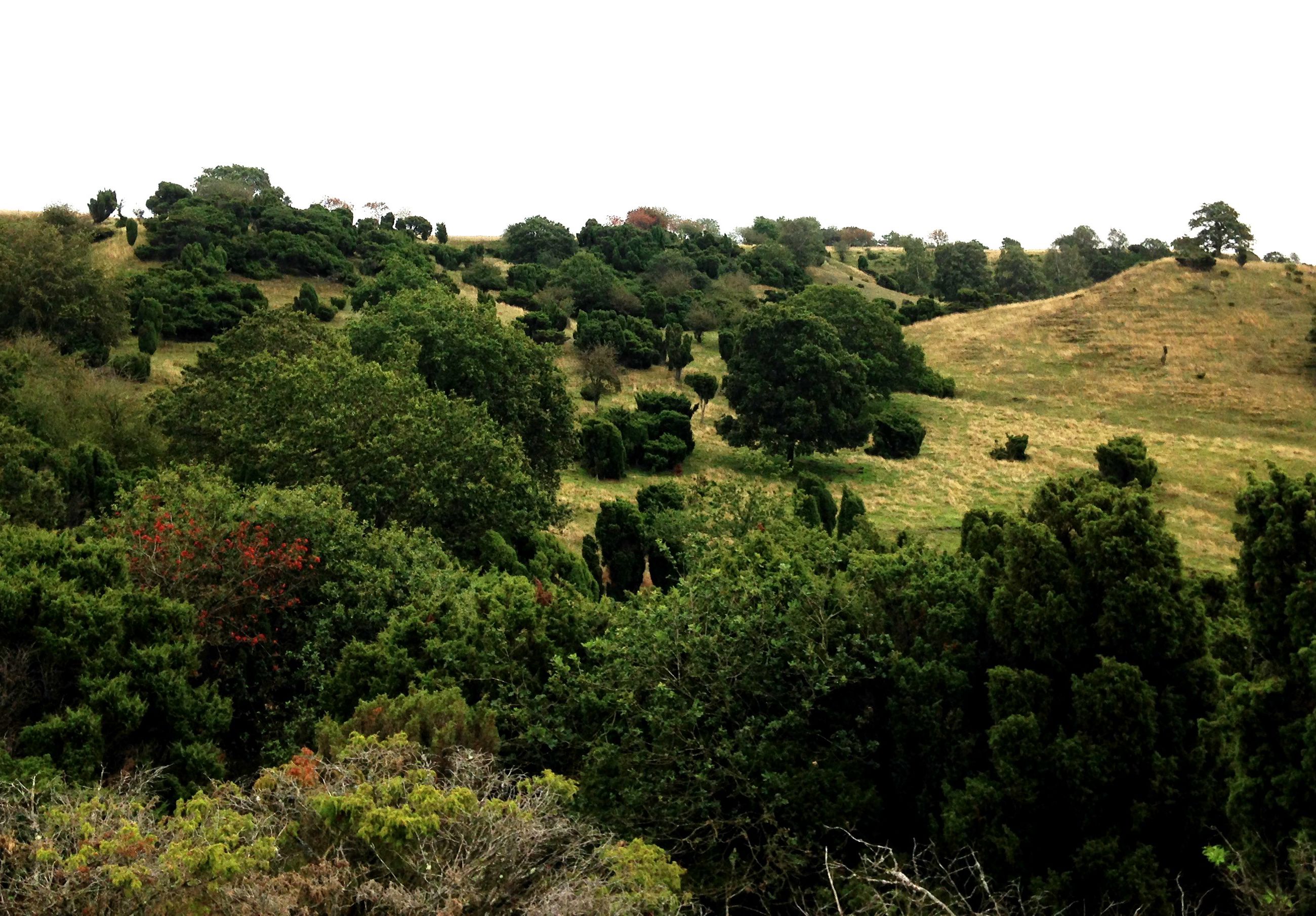 I den vestlige del af bakkerne findes gamle krat, der er domineret af ene med islæt af druehyld og åbne partier med lyng, revling og blåbær.