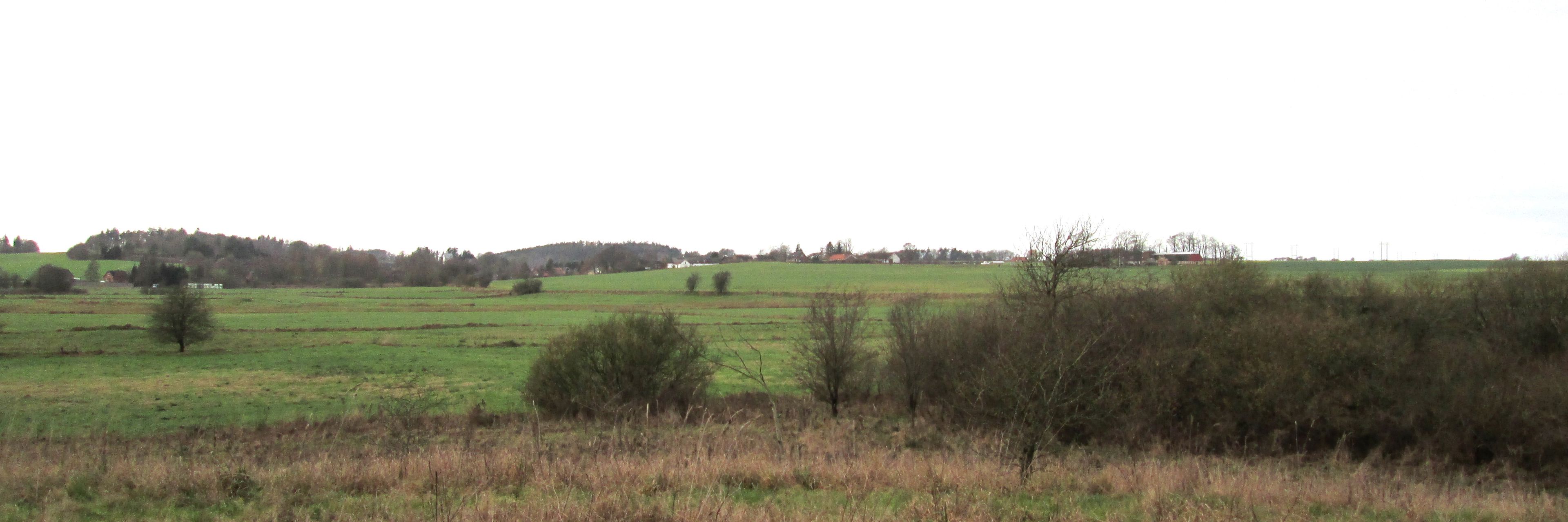 Ved den første markvej drejes til venstre ud i engene. På venstre side af markvejen er der udsigt over Sletkæret, til højre Brunbakkerne eller ”Heden”.