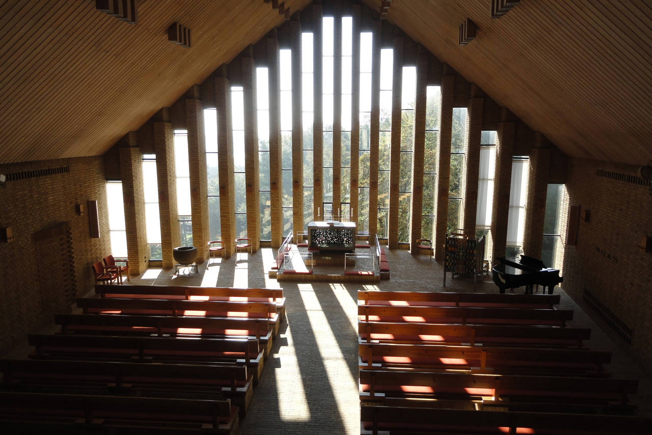 Selve kirkerummet er femkantet, så kirken ligner et skib, der stævner ud i Vestparken. Sct. Clemens Kirke blev indviet i 1963.