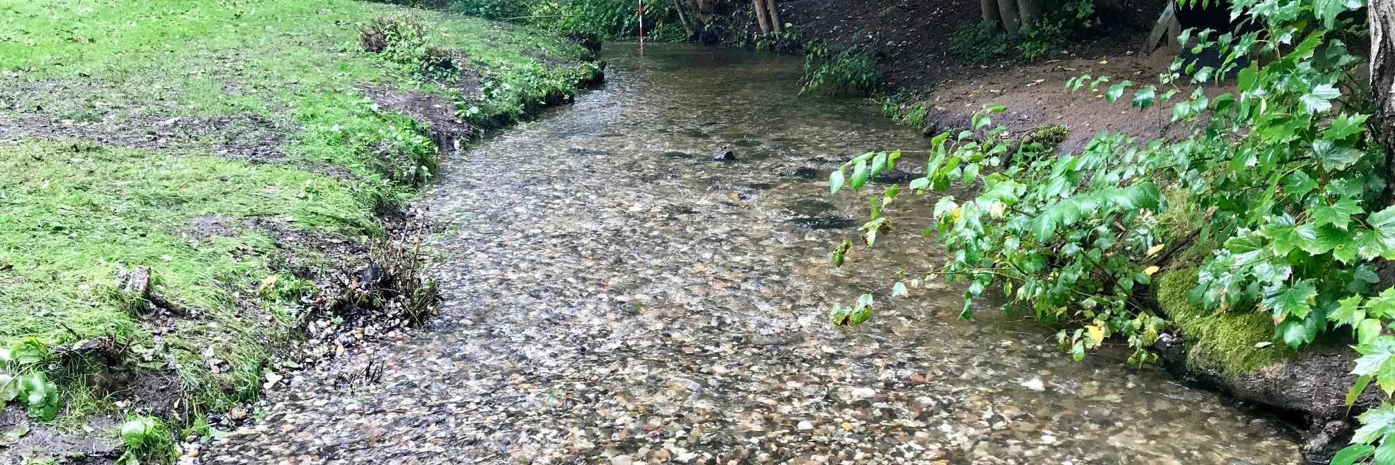 Du kan være heldig at se gydende fisk i Svejstrup Bæk. Gydebankerne finder du, hvor der er godt med fart i vandet og en gruset bund.
