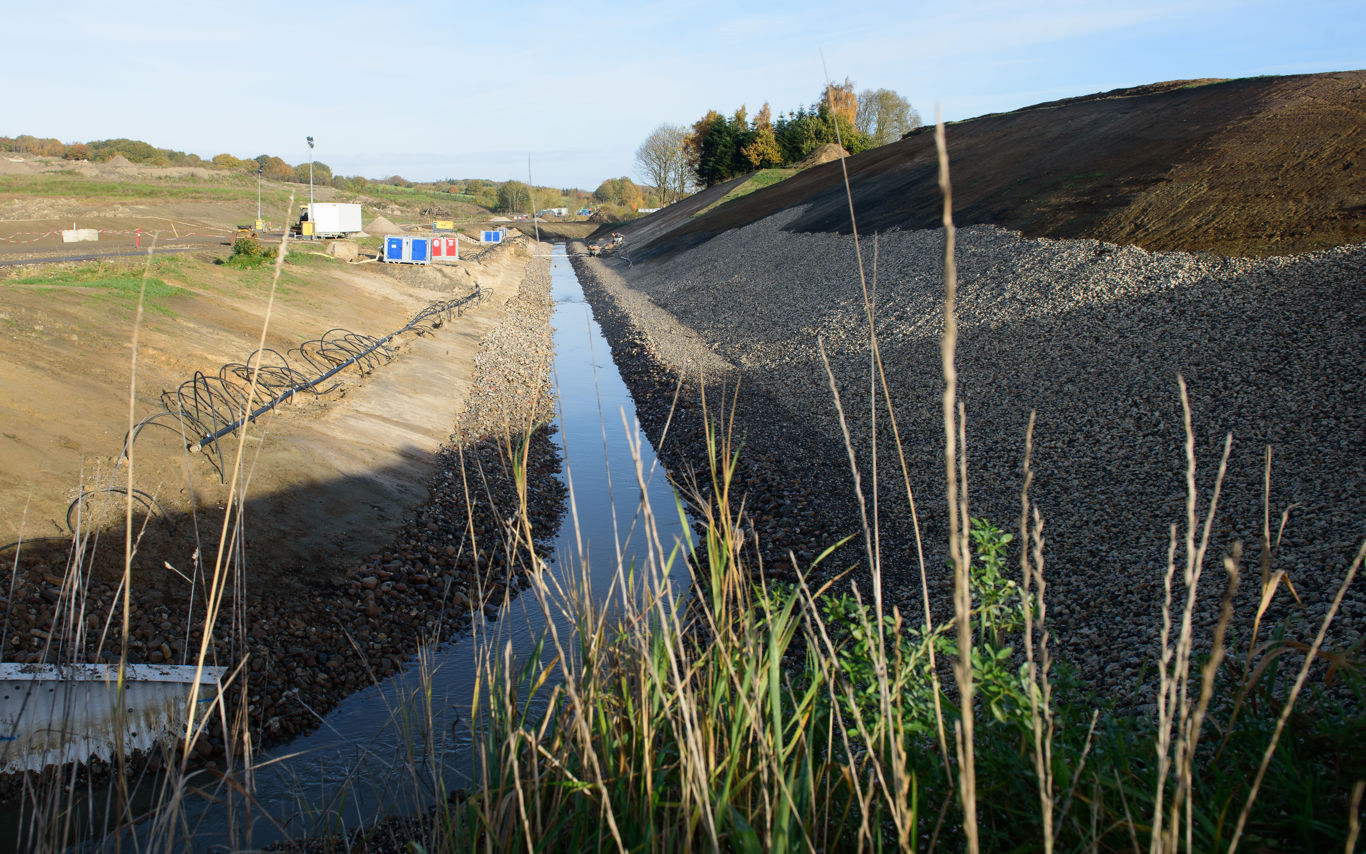 Siden jorden stoppede, er der udført et stort arbejde med at etablere jordvolde rundt om området, render og grøfter inde på området for at sikre, at regnvand ledes ned til opsamlingsbassiner, hvorfra det kan renses.
