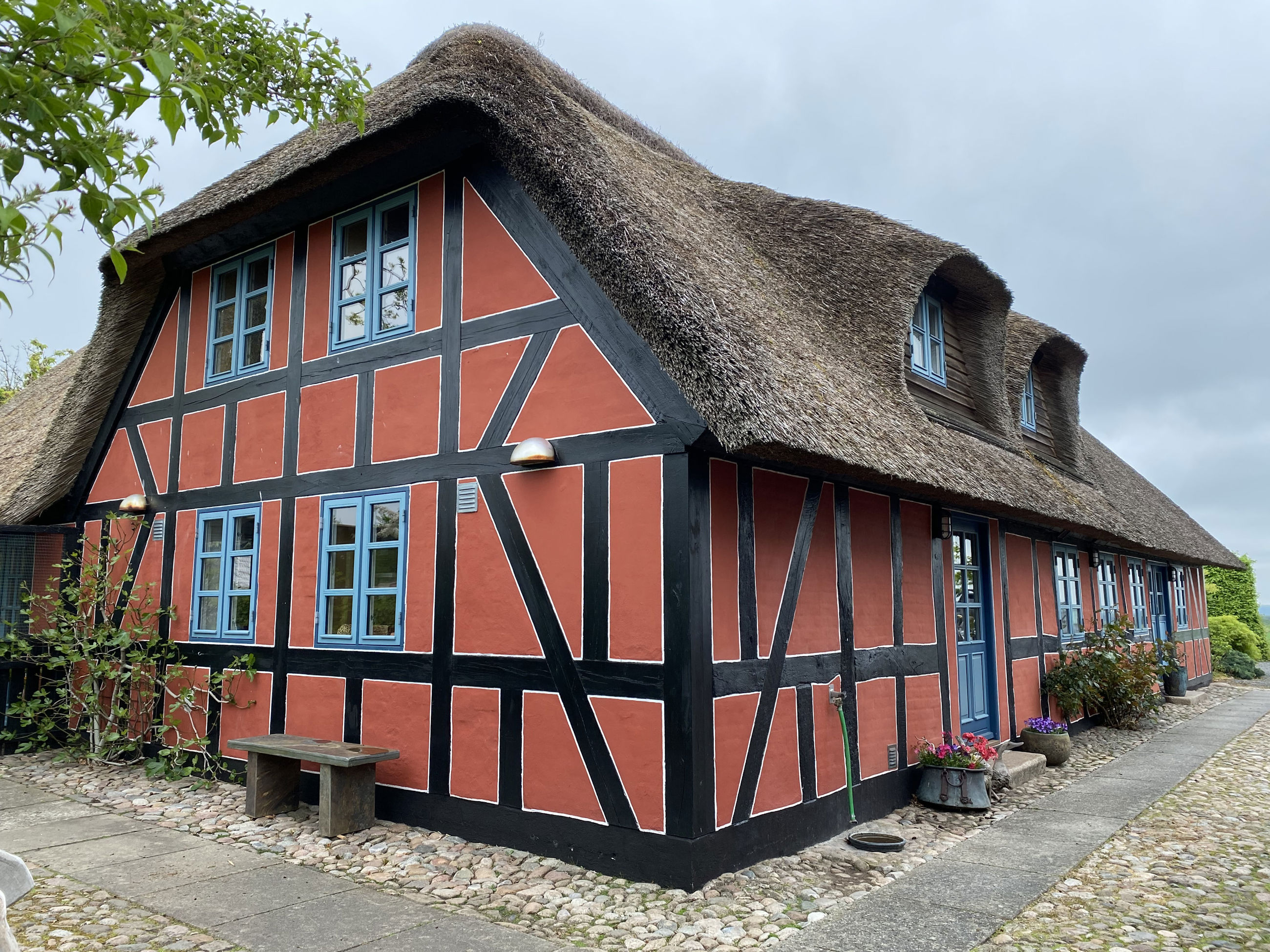 Der blev ansøgt om udskiftning af en del af stråtaget og udskiftning af to større utilpassede kviste, med mere neutrale ovenlysvinduer.