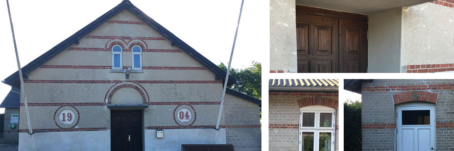 Afrensning er udført uden kemi eller højtrykspuling, men med en nænsom sæbebehandling. Sætningsskader og renoveringer er udført med en diffusionsåben mørtel. Renoveringen af forsamlingshuset er udført meget nænsomt.